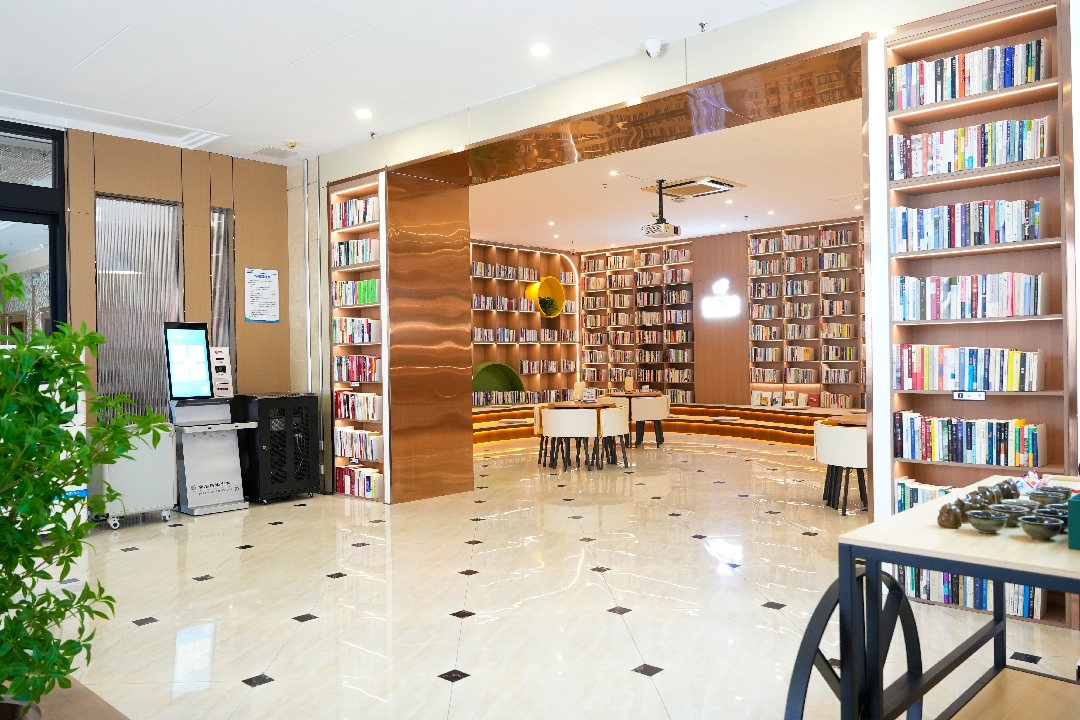 配套設(shè)施:書房內(nèi)設(shè)有舒適閱讀區(qū)、護眼燈光,涵蓋職場技能、文學經(jīng)典、親子教育、歷史社科等多個品類的圖書共計一萬三千余冊,無論是工作之余充電學習,還是周末陪伴家人共讀,都是絕佳選擇。