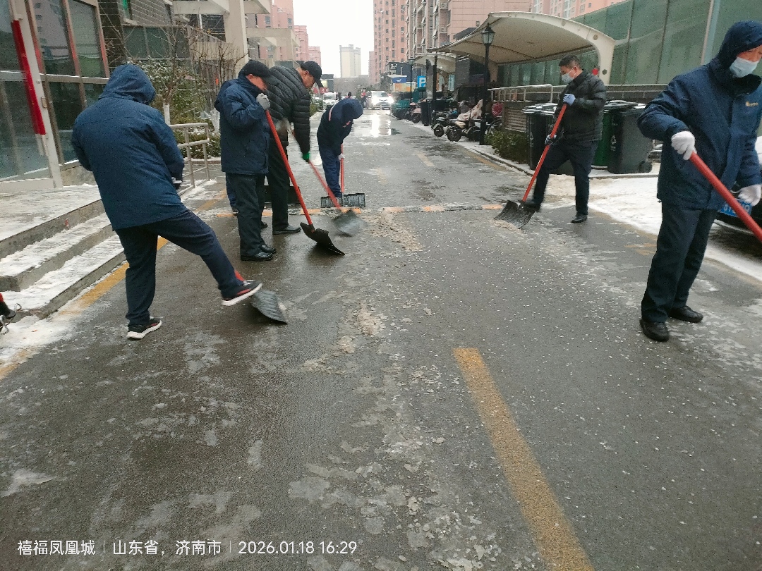 長田物業(yè)禧福鳳凰城項目部,聚焦業(yè)主出行路。結(jié)冰路段的隱患,在物業(yè)人的忙碌中消解。沒有驚天動地的舉措,只有腳踏實地的堅守,護佑每一次清晨的出發(fā)、日暮的歸途。