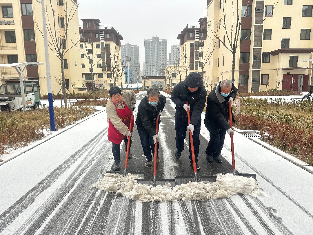 長田物業(yè)北城花園項目部,鼓風(fēng)機轟鳴作響。以速度對抗嚴(yán)寒,用設(shè)備助力清雪,積雪消融處,是暢通無阻的坦途,更是刻在骨子里的擔(dān)當(dāng)。